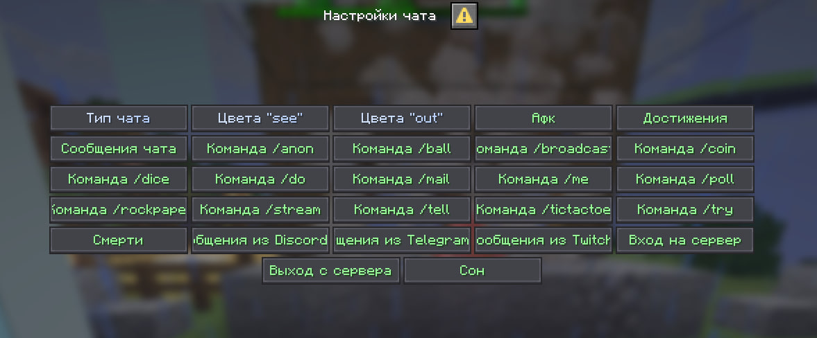 Команда /chatsetting открывает меню Настройки чата, в котором можно гибко включать и отключать нужные типы сообщений лично для себя.