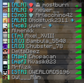 Значки рядом с ником в табе показывают текущее измерение игрока.